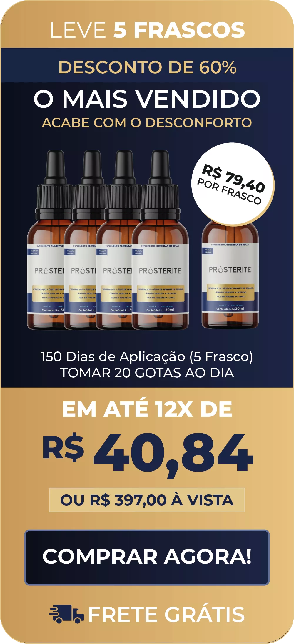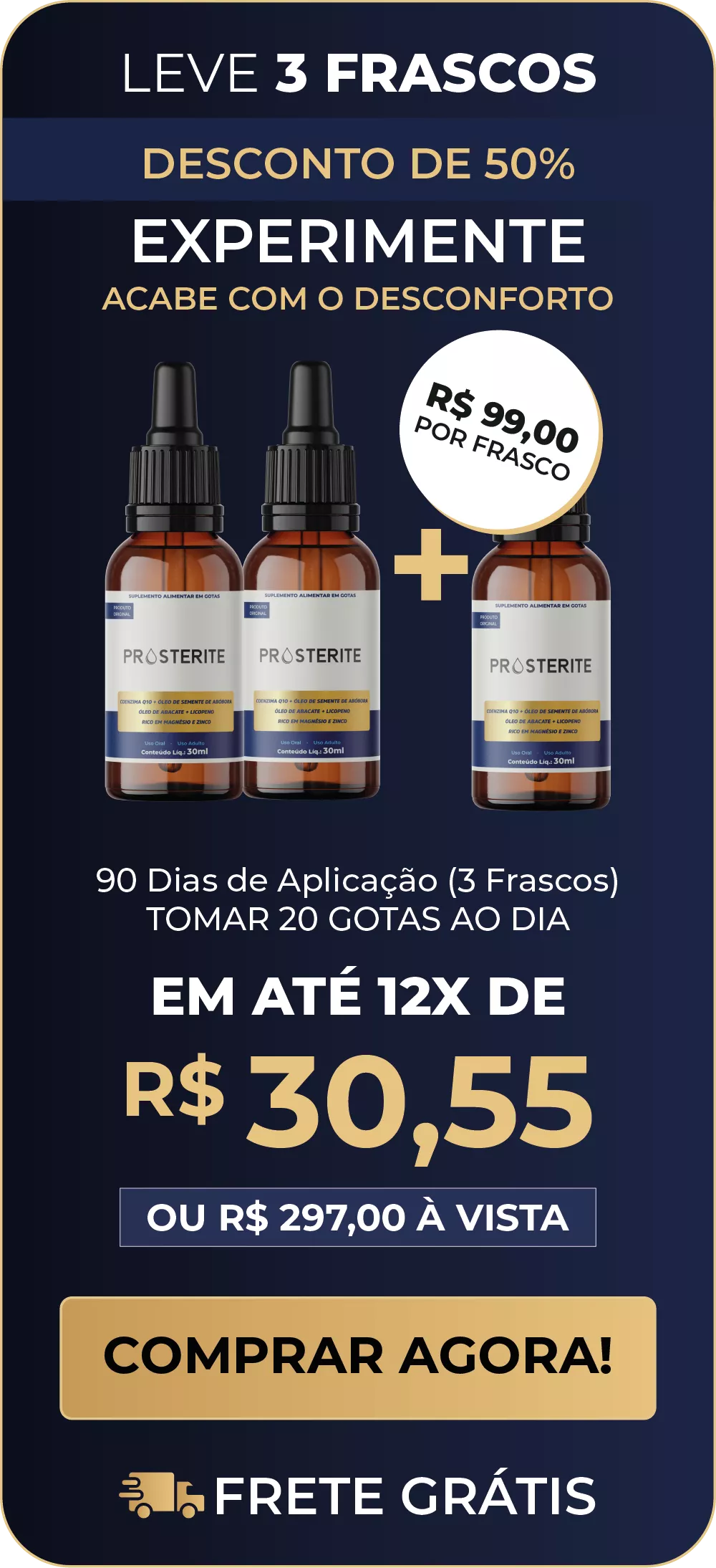 O Prosterite combina ativos poderosos que desinflamam a próstata, aliviam o desconforto urinário e ainda recuperam sua energia sexual.